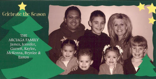James & Jennifer Arciaga have Garrett and Kaylee and the triplets; Brynley, Easton and McKenna. They live in Syracuse, Utah